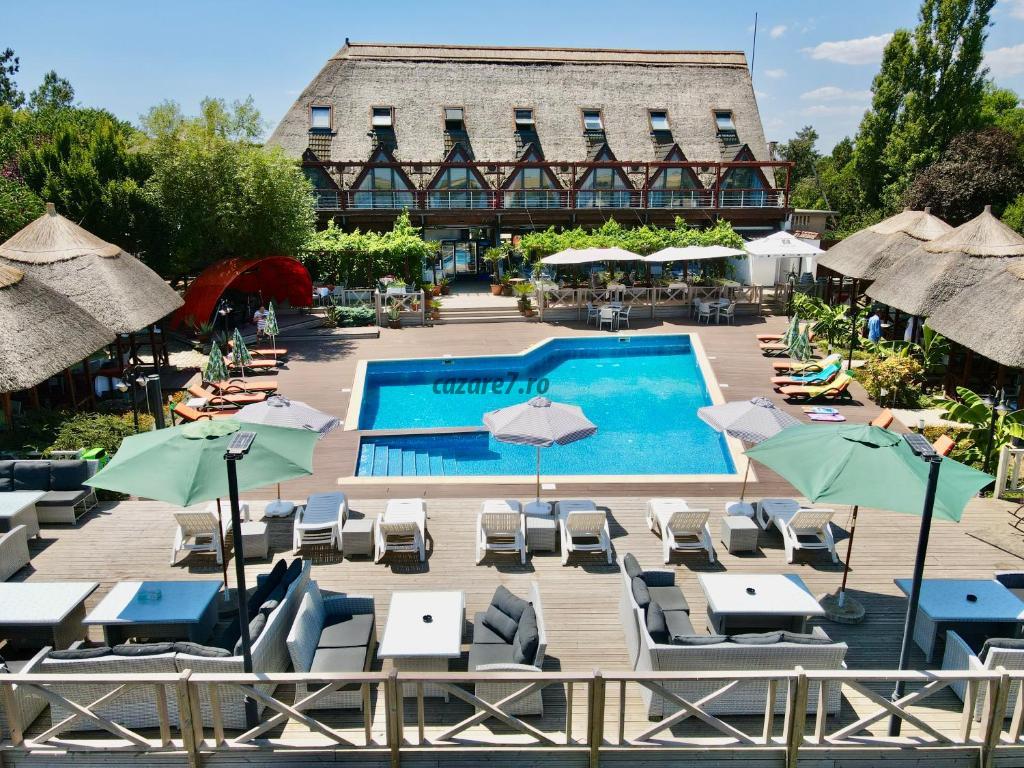 Pensiunea restaurant Casa cu Stuf este locul unde calitatea si bunul gust se unesc pentru a crea un loc de vis, deosebit de cald si primitor care sa-ti ofere confortul dorit atunci cand esti departe de casa.