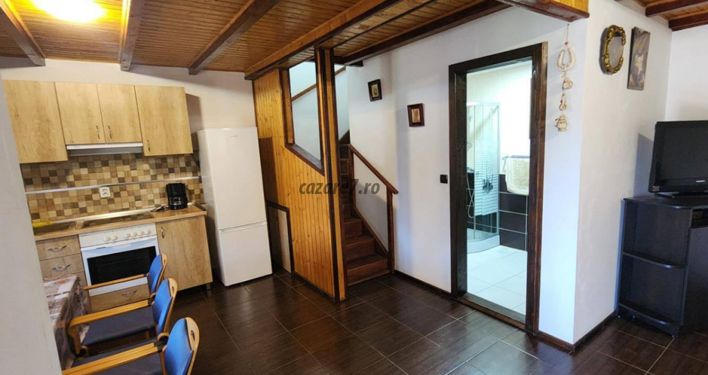 Cabana Marcelo este compusa din living, bucatarie la parter, o baie cu cabina de dus si una la etaj de serviciu.