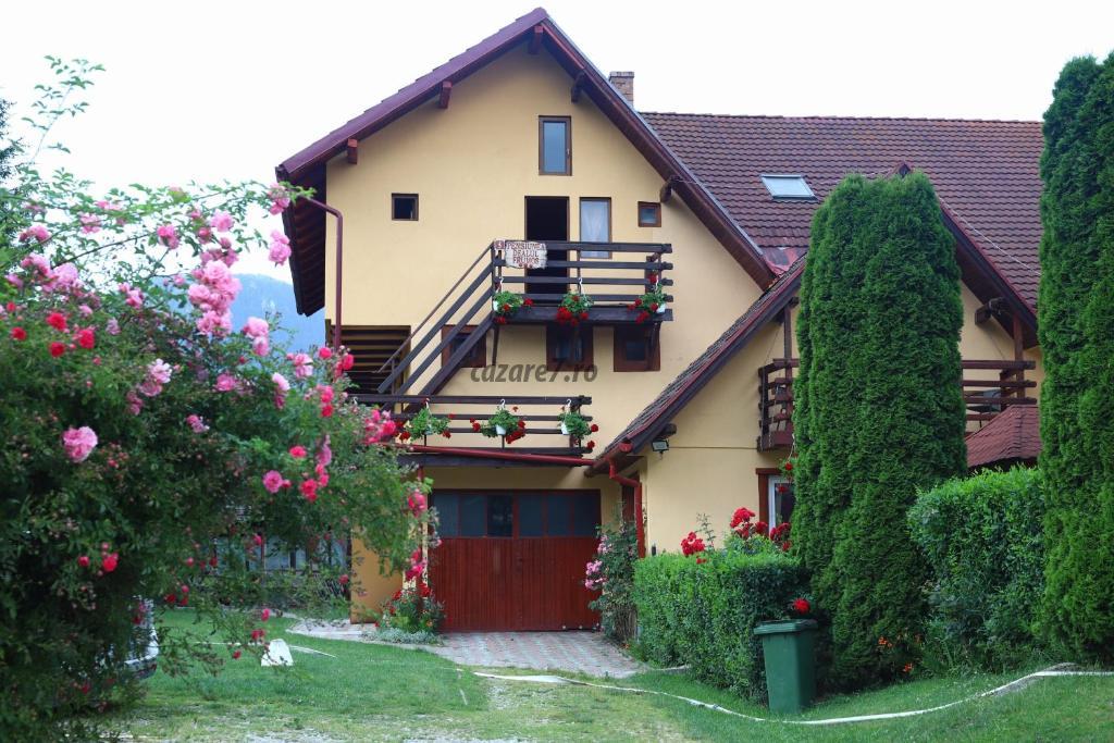 Pensiunea este dotata cu scara exterioara pentru a ajunge la living si la bucatarie.