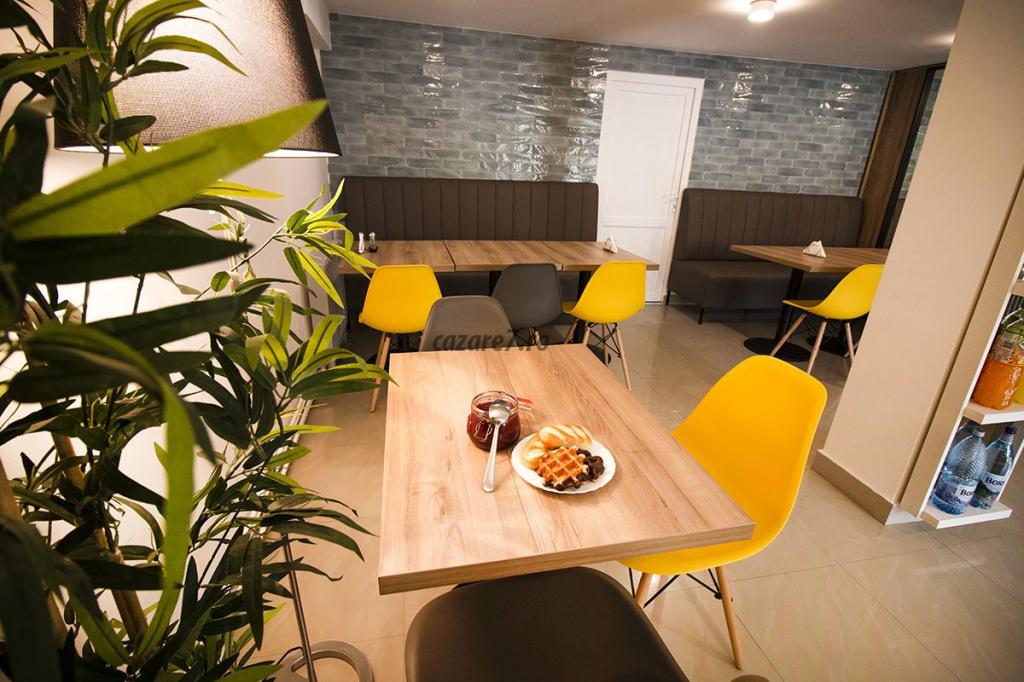 Te așteptăm cu o parcare generoasă, supravegheată video, personal amabil, camere confortabile și mic dejun variat și bun!