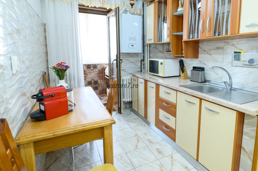 Apartament in regim hotelier situat in Constanta, langa Satul de Vacanta, vis-a-vis de Hotel Oxford, la 300 metri de Aqua Magic. Pana la plaja de face cel mult 5 minute de mers pe jos.