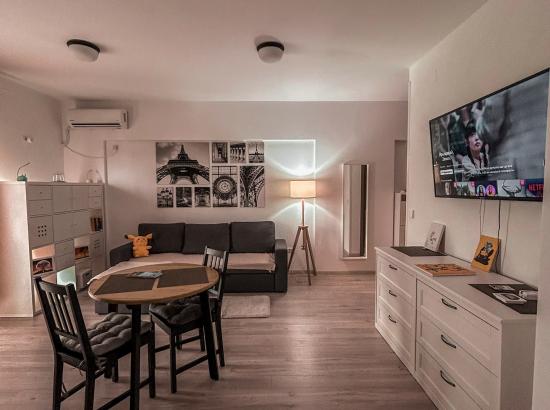 Descoperă CozyStudio, elegant și primitor, amplasat într-o zonă verde și liniștită, în imediata apropiere a Grădinii Botanice și a Parcului Copou. Situat într-un complex rezidențial nou, apartamentul beneficiază de acces rapid la restaurante, cafenele, universități și toate facilitățile urbane esențiale. Interiorul este gândit pentru confort și funcționalitate: o canapea extensibilă ideală pentru momente de relaxare, TV, aer condiționat și Wi-Fi de mare viteză. Bucătăria modernă și complet echipată îți oferă libertatea de a găti, indiferent dacă ești într-un city break sau într-un sejur prelungit.