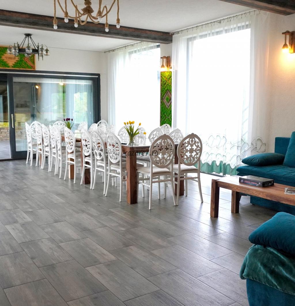 Cabana Bârlogul Vikingilor are 11 camere cu 10 băi , având capacitatea de 20 - 22 de persoane.