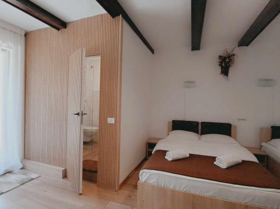 Situata la intrarea in Moeciu de Jos (din directia Bran), la numai 2 km de Castelul Bran si 200 m de Panner. Pensiunea Silvana va ofera cazare in 2 camere duble, 2 camere triple si 2 cam cu 4 locuri ( se pot caza 2 adulti si doi copii), toate cu bai proprii; dispunem de Tv prin cablu, sala de mese, living, semineu, acces la bucatarie complet utilata, masina de spalat vase, curte mare, foisor inchis si incalzit, terasa, locuri de parcare, gratar si un ciubar premium cu hidromasaj/aeromasaj.