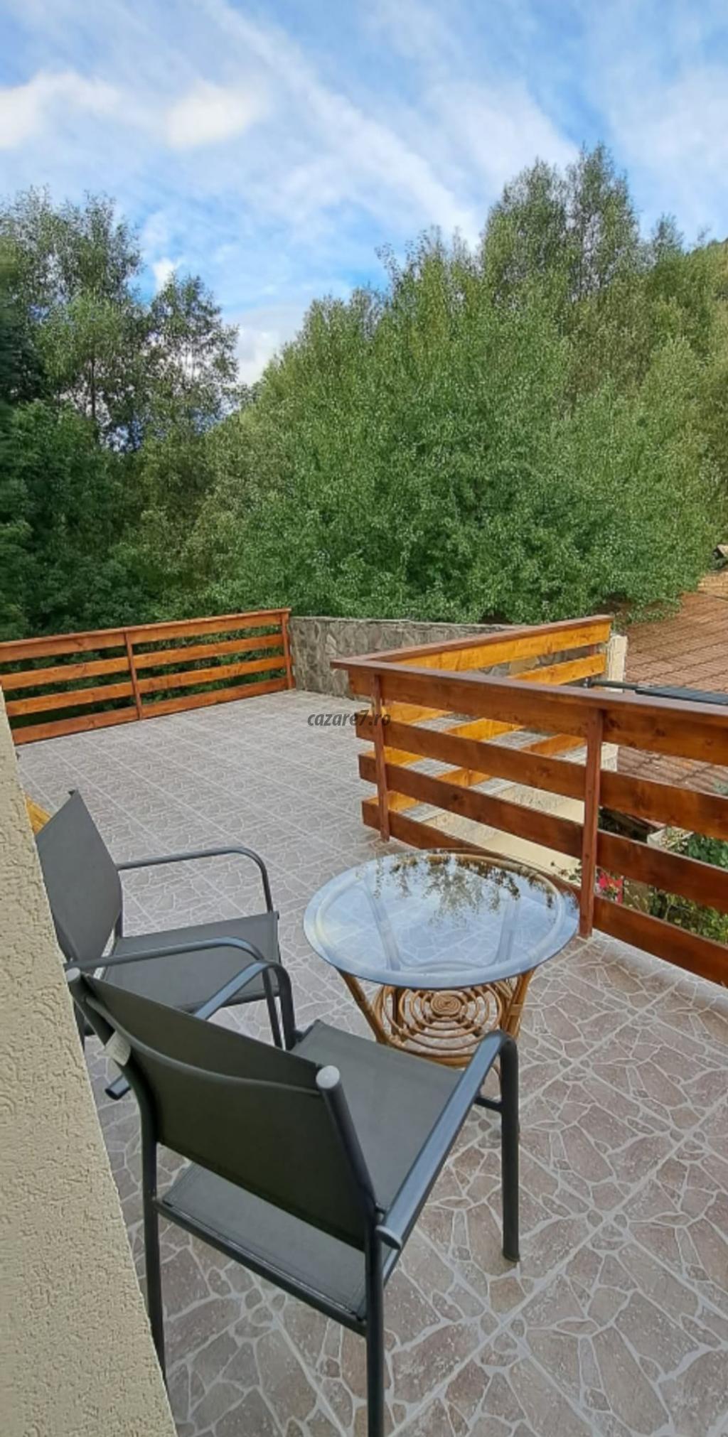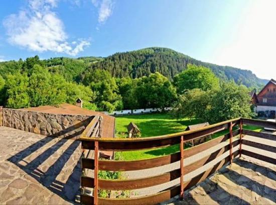 In spate, oaza de liniste este completata de raul Turcu, vara, puteti savura o cina romantica la masa din lemn masiv asezata pe pajiste sau in foisorul din spatele Vilei, unde puteti auzi susurul apei.