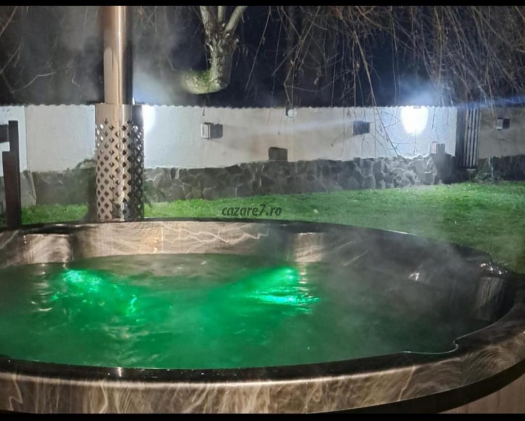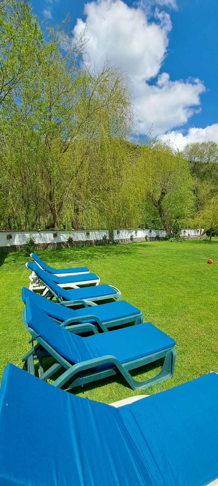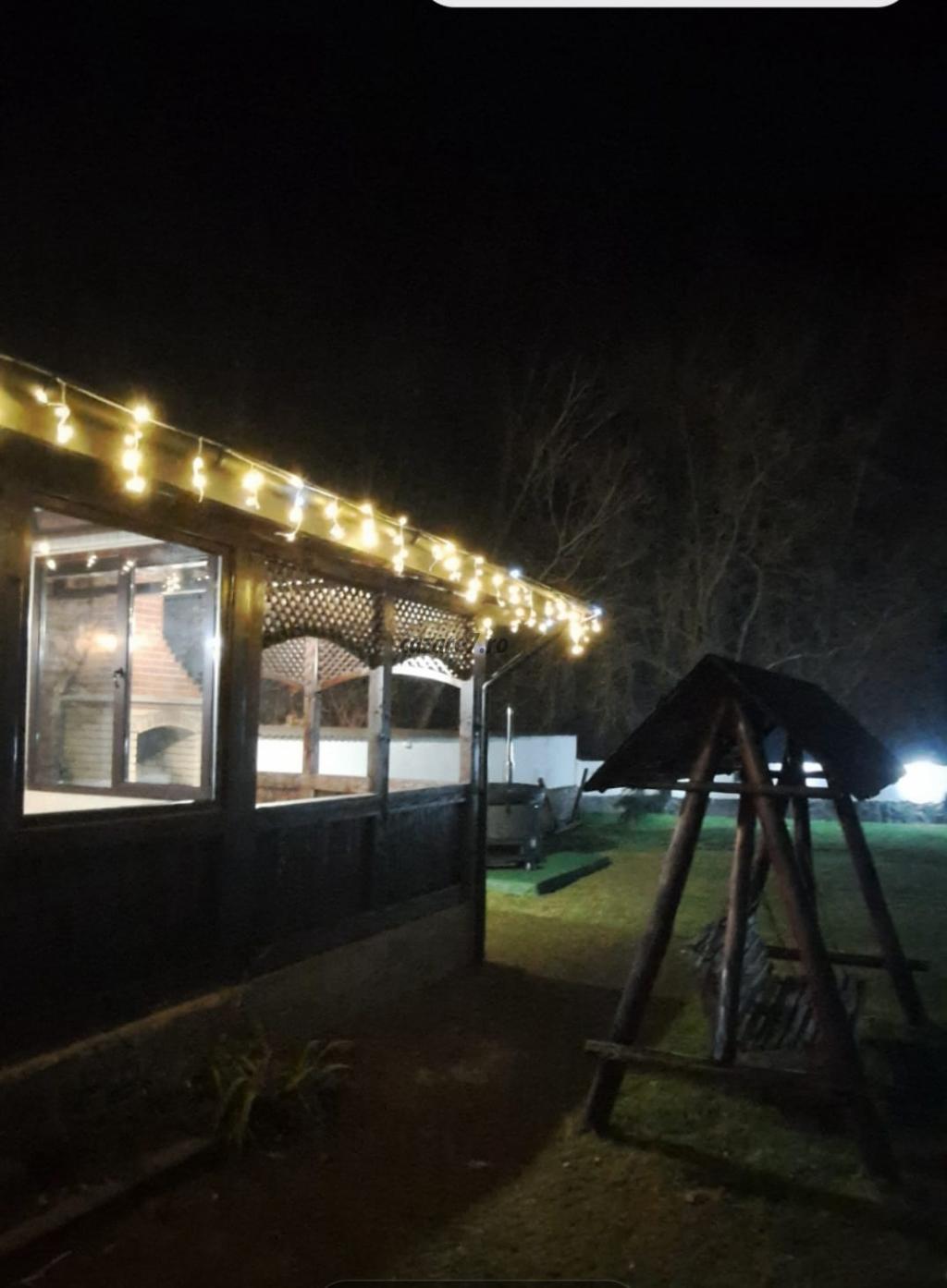 Curte de 2000 mp. Imprejmuita cu gard, pajiste, flori, parcare proprie, gratar acoperit, foisor pentru 20 de persoane, loc de joaca pentru copii, iaz. Ciubarul se inchiriaza separat nefiind inclus in pretul cazarii.