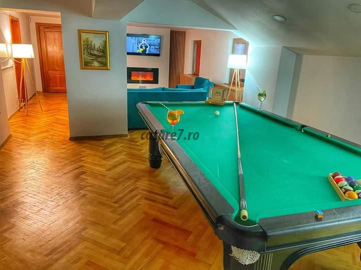 Iar daca vremea nu tine cu noi, nu va veti plictisi nici in interior, unde puteti alege dintr-o varietate de metode de divertisment: relaxare la piscina acoperita, ciubar sau la sauna, joc (tenis de masa, biliard, sah, diverse jocuri de societate).