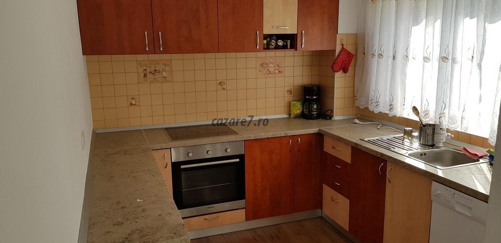 -bucătărie complet utilata (vesela, tacamuri, plita si cuptor electric, masina de spalat vase)
