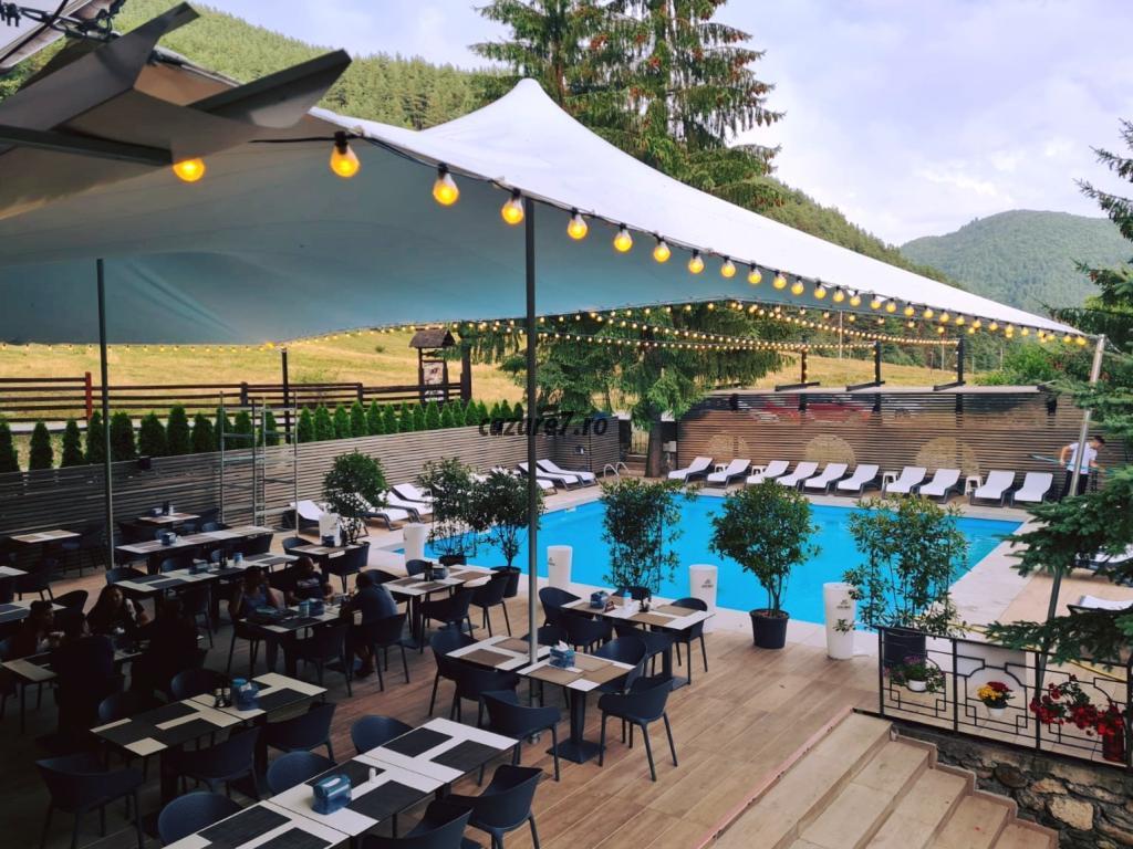 Va stau la dispozitie 54 locuri de cazare dupa cum urmeaza: Pensiunea Mai clasificata la 5 margarete (18 locuri) 8 camere duble si un apartament si Cabana Mai clasificata la 3 stele care pune la dispozitie 19 camere standard (36 locuri).Camerele sunt dotate cu pat matrimonial, baie proprie (cu uscator de par), balcon, TV (50 programe) - cablu, telefon, minibar, acces internet wireless, acces la sauna, vara - piscina exterioara cu apa incalzita, parcare pazita.