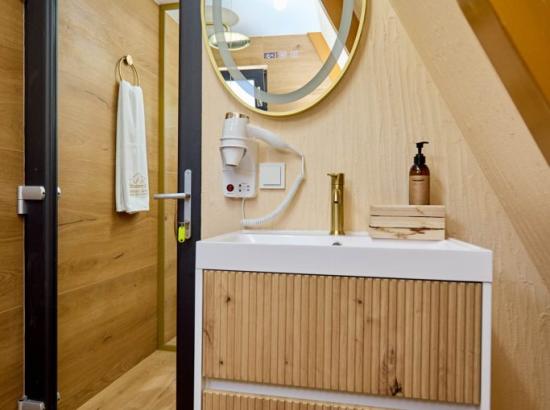 Această opțiune îți oferă ambele cabane, fiecare gândită pentru a găzdui 2-8 persoane, cu un total de 4-16 locuri. Fiecare cabană dispune de 2 dormitoare spațioase cu paturi duble (200×160 cm), 2 canapele extensibile (200×160 cm), o baie privată și o bucătărie complet utilată. Foișorul comun de 60 mp devine inima petrecerilor tale, perfect pentru mese copioase, seri de dans sau momente de relaxare cu până la 70 de persoane la mese și 100 cu mese suplimentare pe terasă.