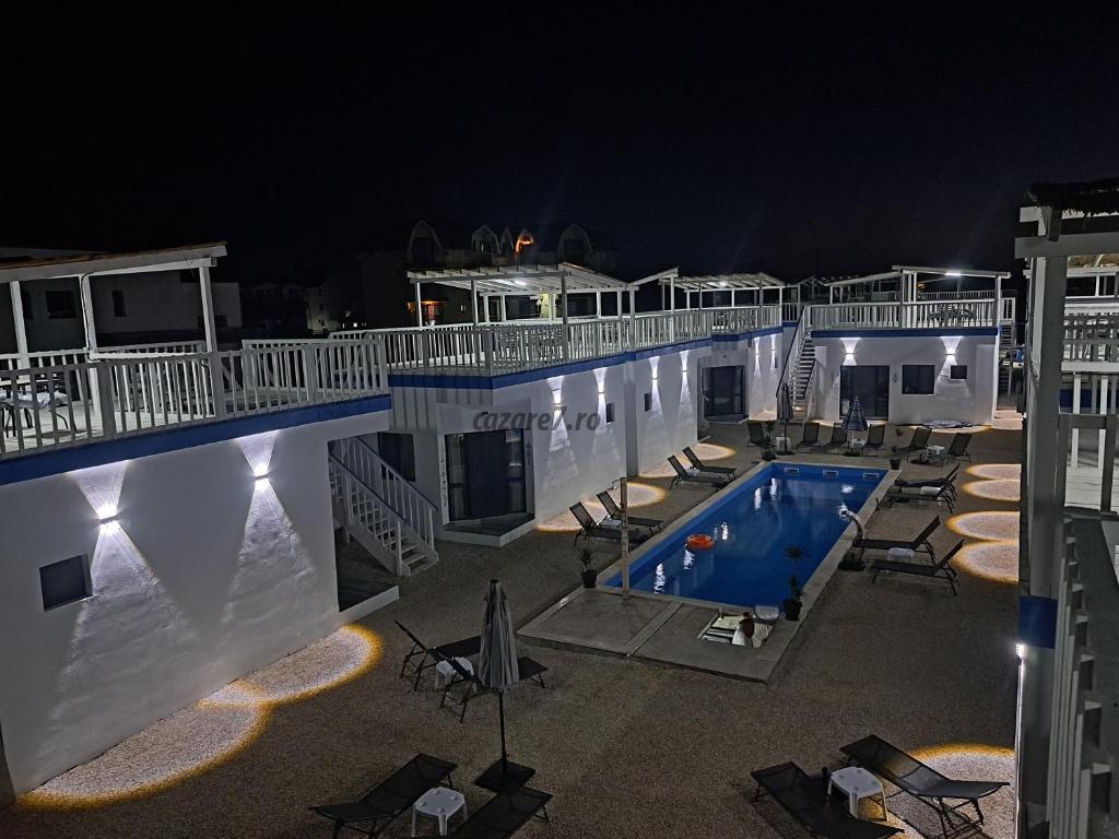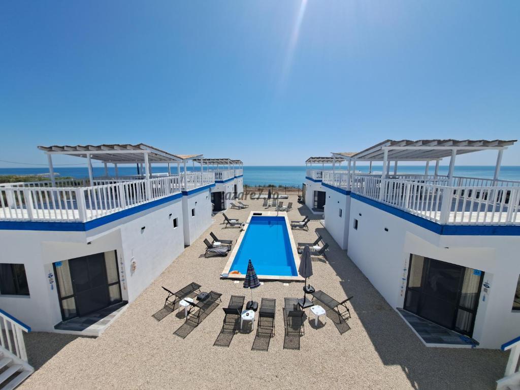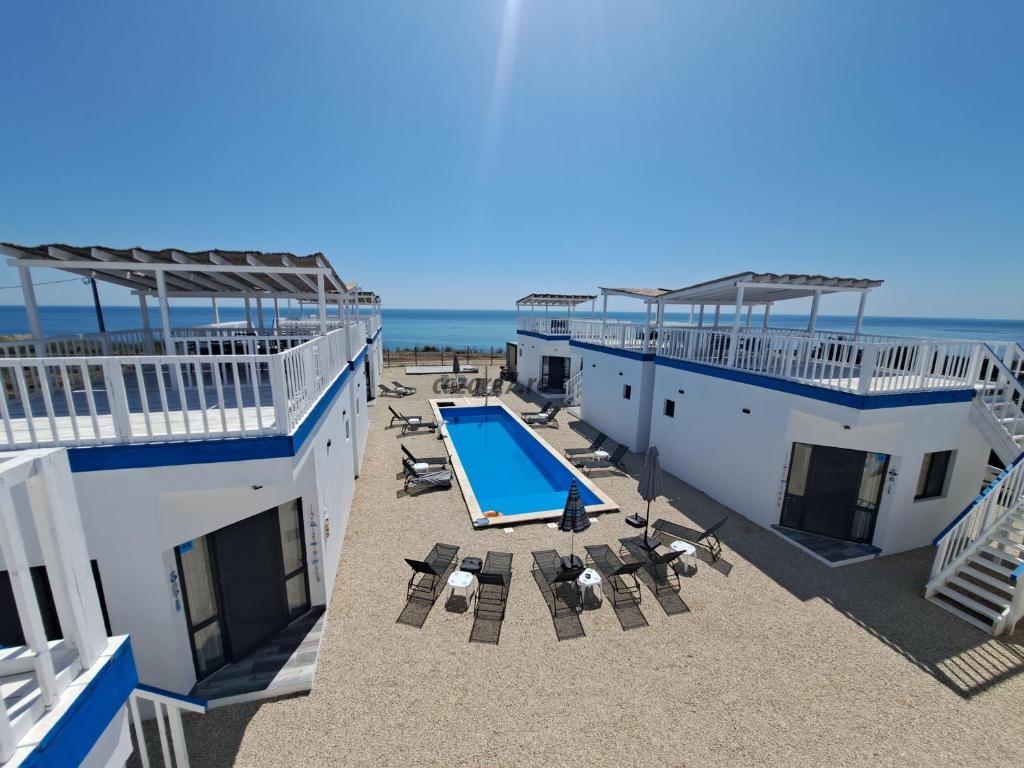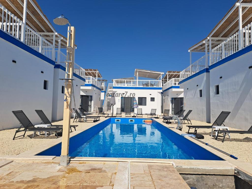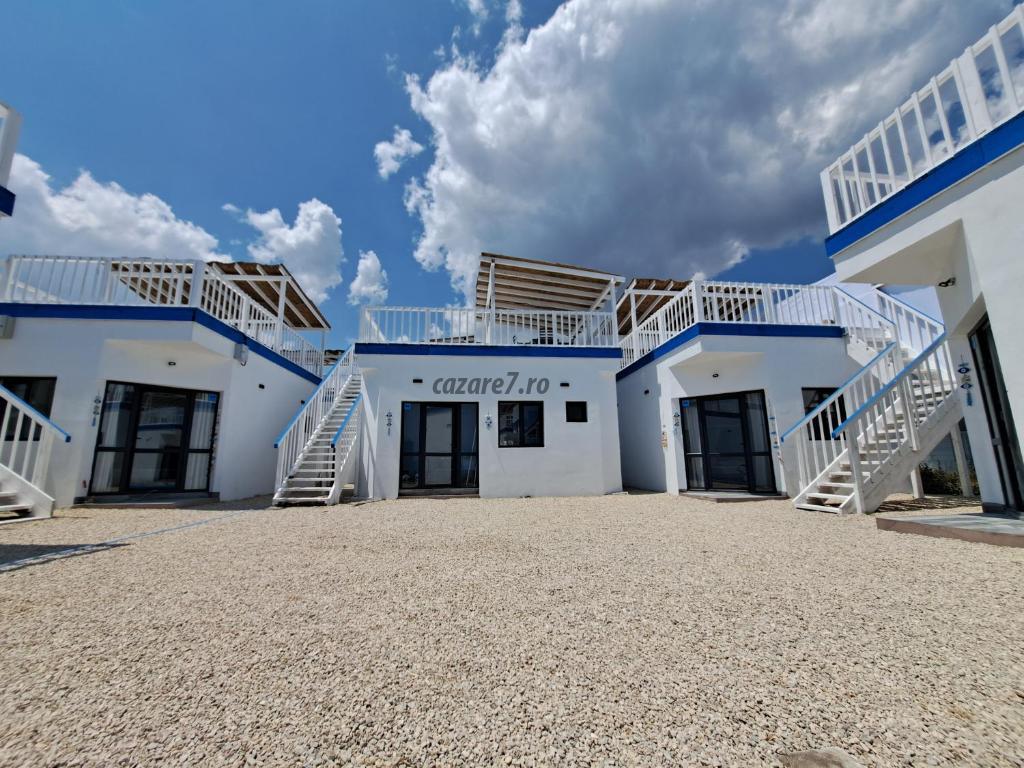 Cele 10 bungalow-uri se afla in primul rand la mare exact pe faleza, cu vedere directa de pe terasele rooftop si la o distanta de 200 m de plaja salbatica din Golful Francezului si 800 m de Forum toate bungalow-urile au vedere din interior către piscina.