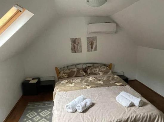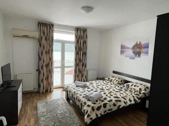Aceasta proprietate va pune la dispozitie 5 camere (3 camere la etajul 1,cu vedere la Dunare + balcon si 2 camere la mansarda),fiecare camera are baie proprie, Led TV, minifrigider, aer conditionat. La parter puteti beneficia de living, baie, bucatarie comuna complet utilata, terasa . La cerere se pot oferi contra-cost si paturi suplimentare.