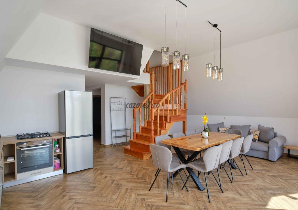 Avem o capacitate de 10 ( +2) persoane, 5 camere cu bai individuale, dintre care 2 cu pat suplimentar, living, bucătărie utilata complet, foișor cu capacitate de 30 de persoane, zona grătare și protap, zona amenajata pentru foc de tabăra, ciubar și loc de joaca pentru copii.