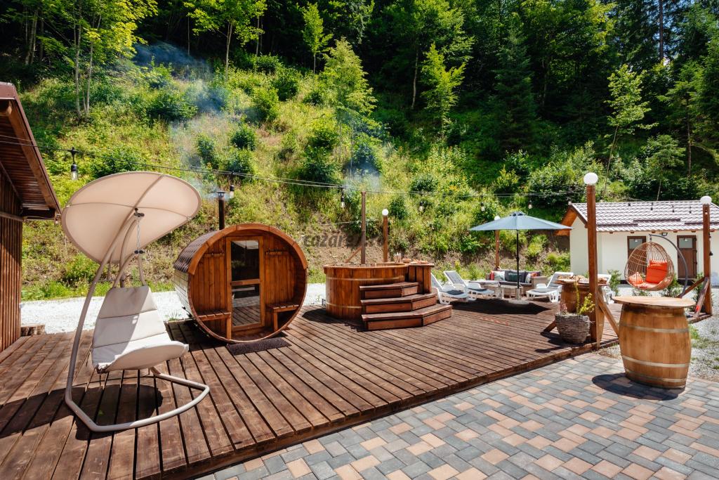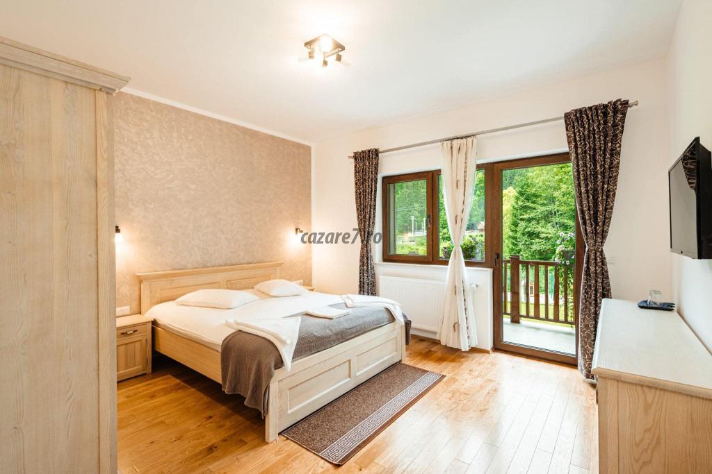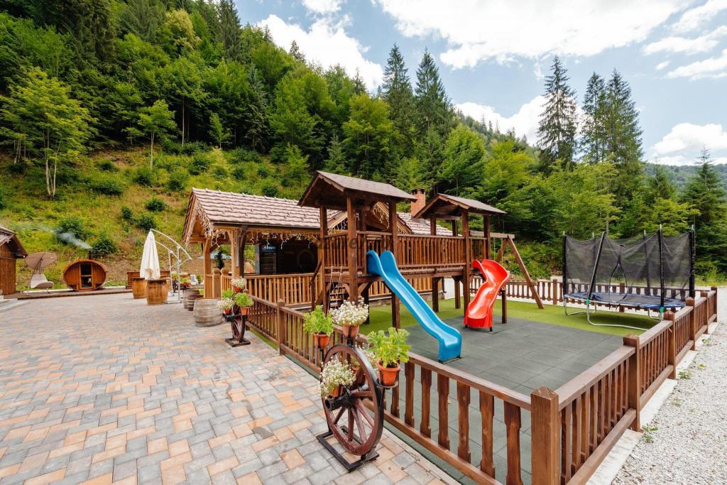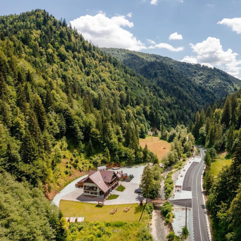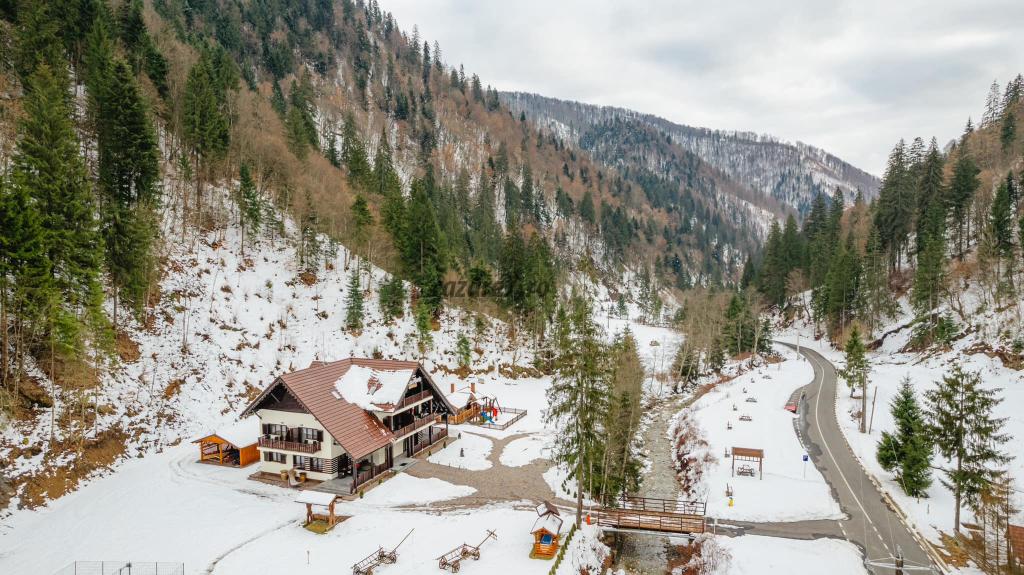 Arhitectura cu specific montan, care îmbină elemente din lemn masiv și piatră, aerul curat de munte și imprejurimile fac din această pensiune o locație perfectă pentru relaxare și distracție în intimitate.