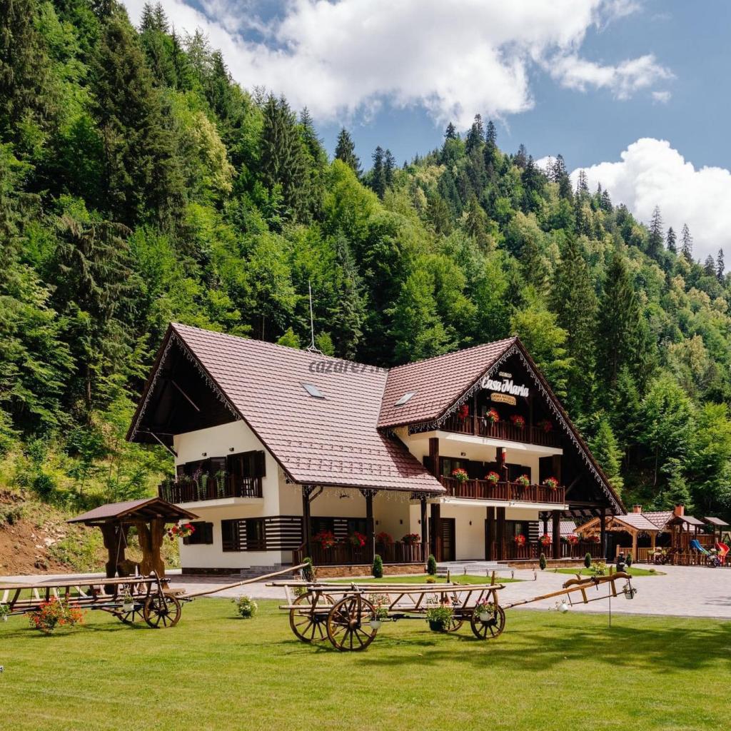 Casa Maria este amplasată în mijlocul naturii, înconjurată de munți și brazi, iar râul Izvor traversează curtea pensiunii.