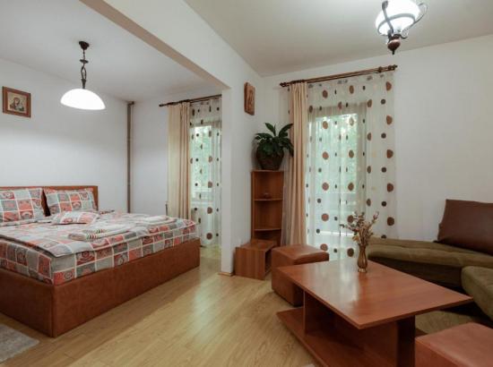 • la parter, camera de zi (tip garsonieră) este prevăzută cu o bucătărioară complet utilată, baie de serviciu și o canapea pe colț confortabilă pentru cei care se întâlnesc aici;