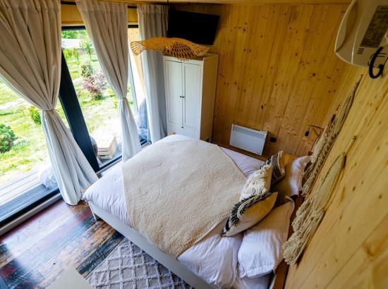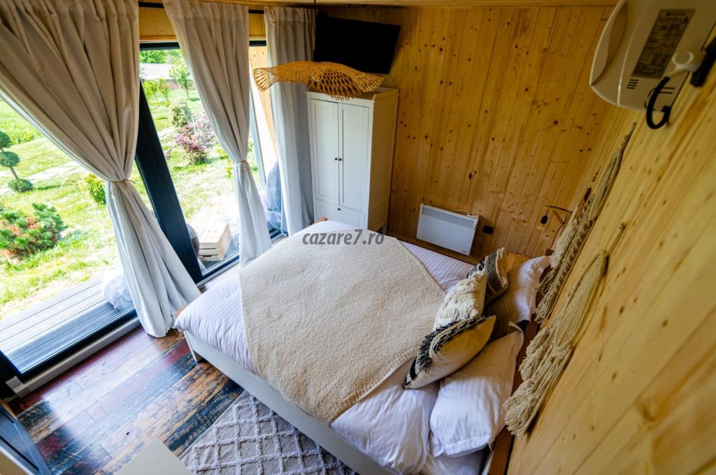 În fiecare container se regăsește 1 dormitor matrimonial cu pat de 160*2 m, un living cu canapea extensibilă și o baie cu duș, cu intrare din hol pentru a nu deranja persoanele aflate în cealaltă cameră.