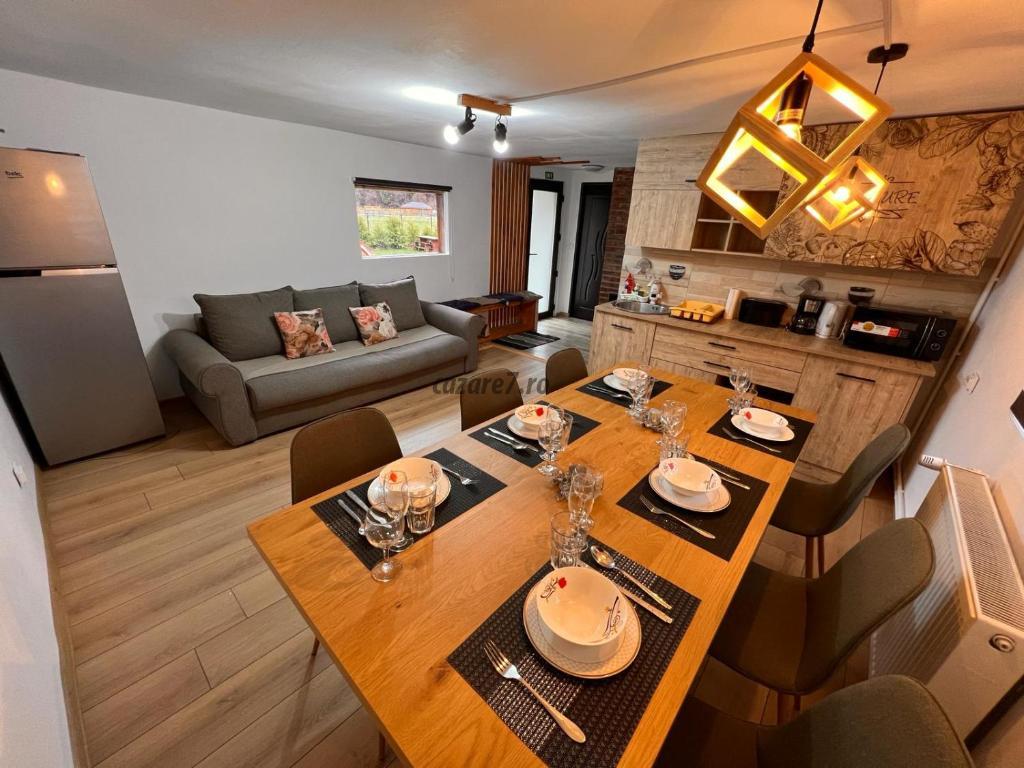 Avand o priveliste superba cabana dispune de maxim 8 spatii de cazare fiind distribuite astfel :1 dormitor matrimonial cu baie proprie cadă in camera și vedere panoramică, ! Al 2 lea dormitor cu 2 paturi mari king size (4 pers), a doua baie, 1 living unde este o canapea extensibila pentru 2 pers și bucătăria open space. Locatia se preteaza perfect pentru 6 persoane, dar se poate închiria unui grup de maxim 8 persoane conform descrierii de mai sus.